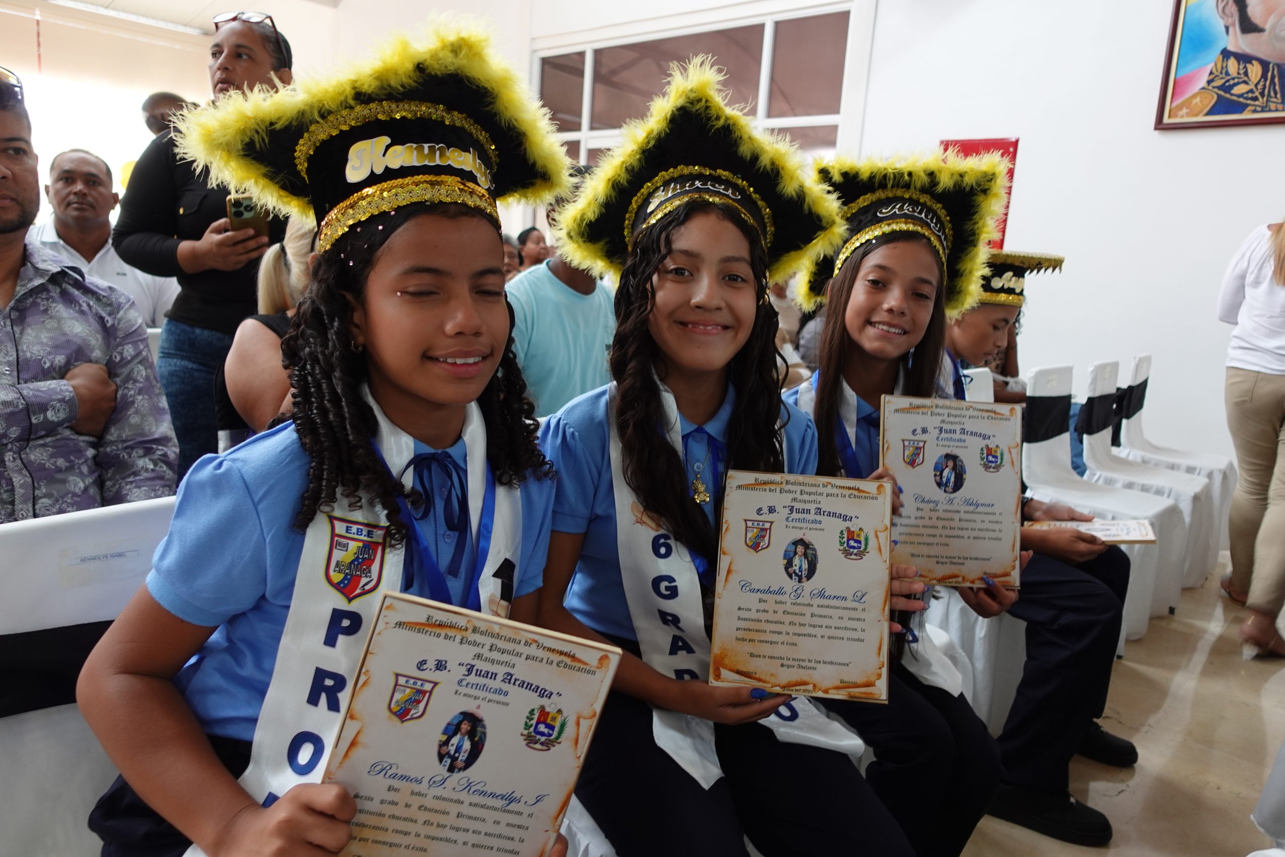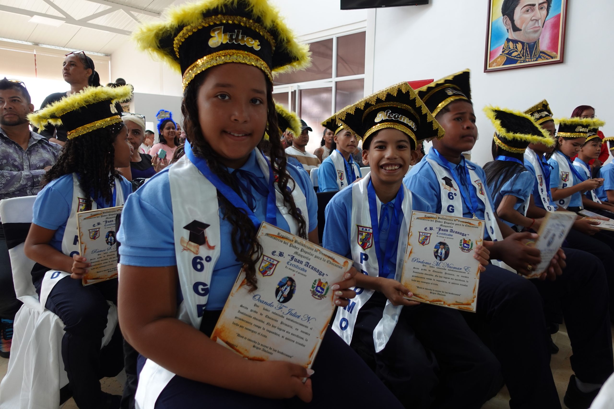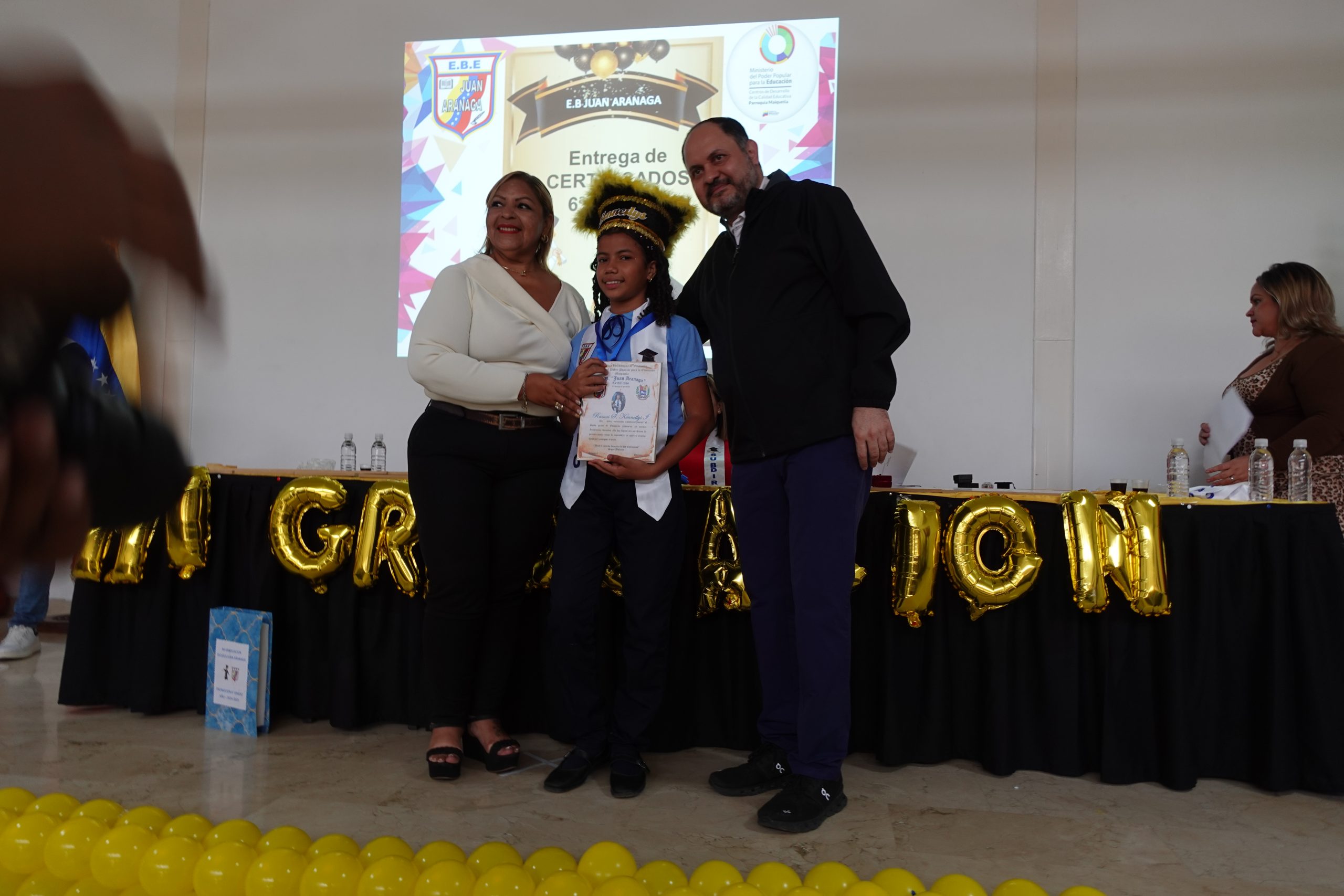 Por su parte, Diana Virísimo, directora de la Escuela Básica Juan Aranaga, informó que esta es la promoción número 86 de la institución, con la graduación de 54 estudiantes. Virísimo destacó el potencial de la escuela, señalando que el plantel “brinda apoyo tanto a necesidades educativas especiales como a niños regularmente inscritos” y que sus estudiantes han alcanzado “uno de los mejores promedios en la calidad educativa de nuestro estado”.