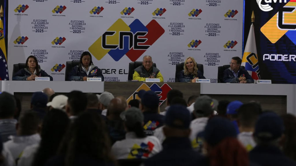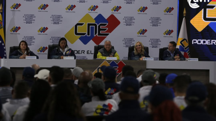 Durante su intervención en la rueda de prensa, el presidente del CNE, Elvis Amoroso, elogió la masiva participación del pueblo venezolano, quien salió a ejercer su derecho al voto y venció la abstención.