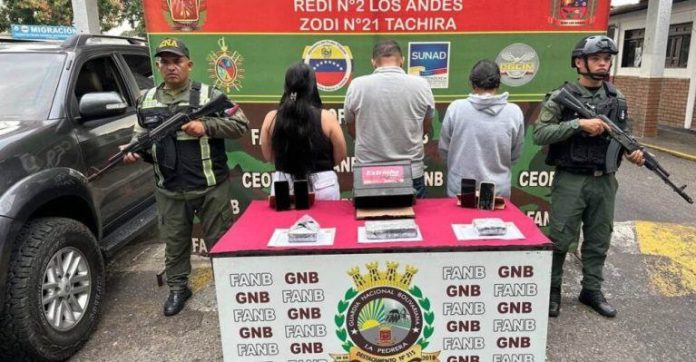Fueron aprehendidos por efectivos de la Fanb en un Puesto de Atención al Ciudadano (PAC) ubicado en la localidad de La Pedrera, en Táchira, agregó Hernández Lárez en la red social X, donde compartió fotografías del material incautado y de los detenidos de espaldas.