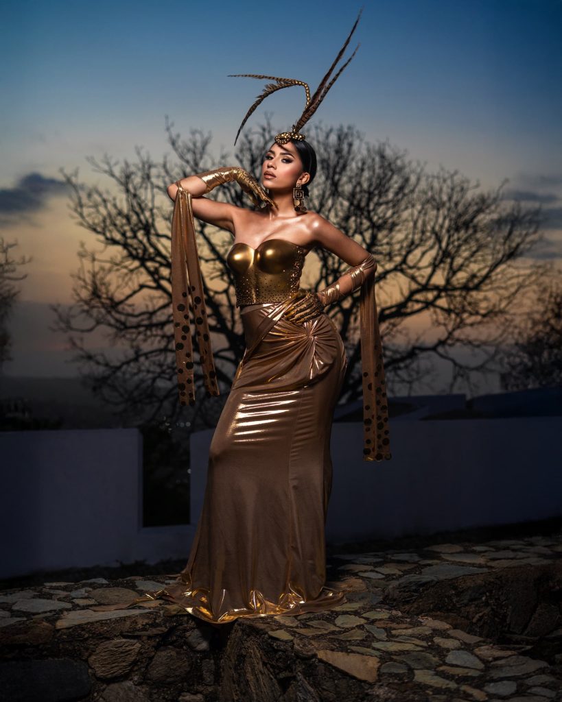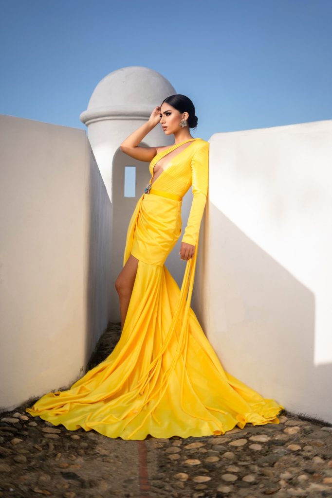 «Quiero que la gente, al ver mis diseños, conecte con la belleza de nuestra cultura, la fuerza de nuestra historia y el espíritu vibrante de nuestra gente. El Castillete San Carlos, con su imponente presencia y significado histórico, fue el escenario perfecto para esta sesión, ya que simboliza la resistencia y la riqueza de nuestra identidad”, destacó Falcón.