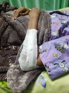 Como consecuencia de la caída Narcybeth, presenta un fuerte golpe en la cabeza, una herida abierta en la frente, fractura del brazo izquierdo y múltiples moretones en diversas partes del cuerpo. Actualmente, se encuentra recluida en el Hospital San José, a la espera de la realización de una tomografía para evaluar la extensión de sus lesiones.