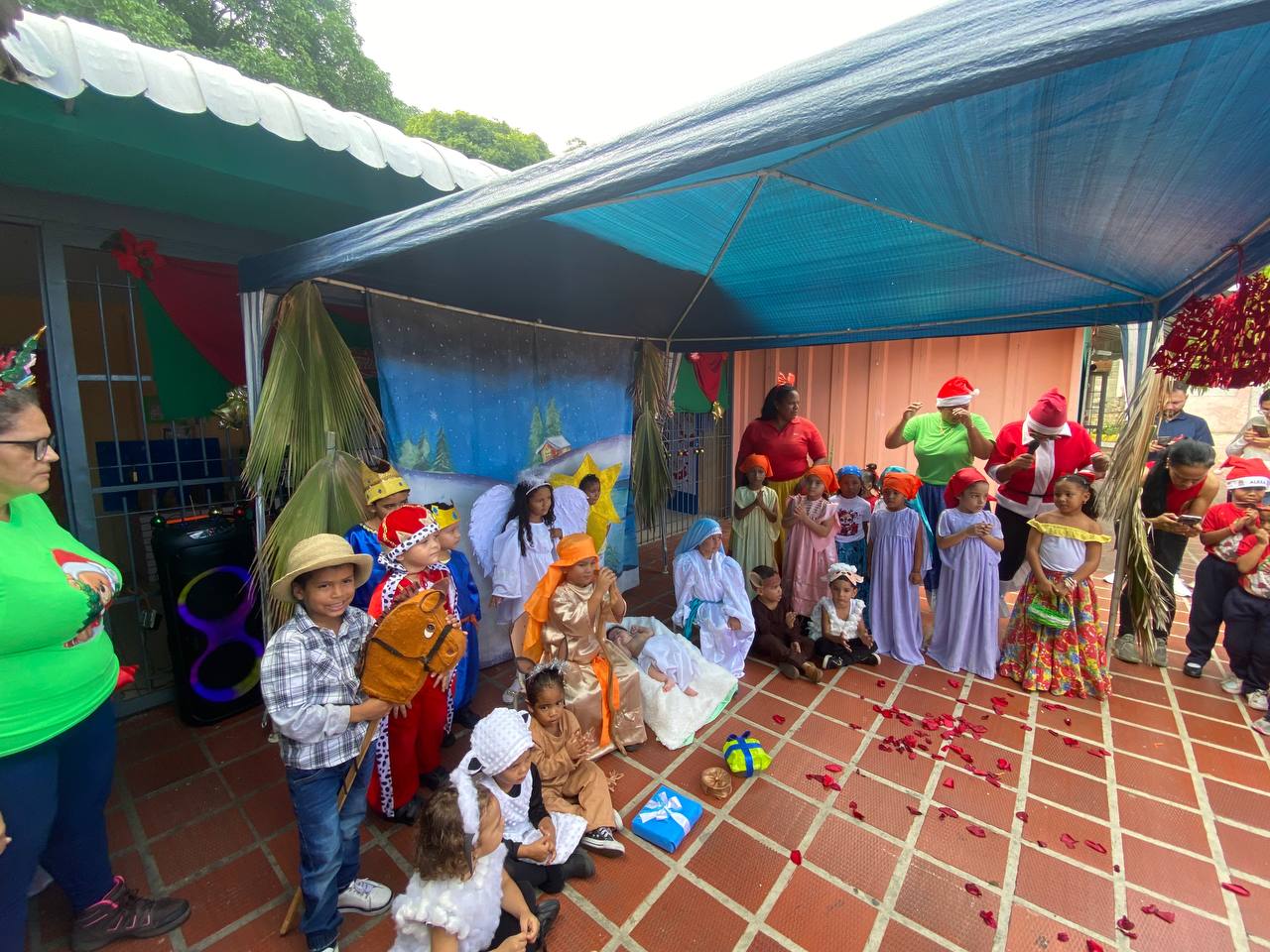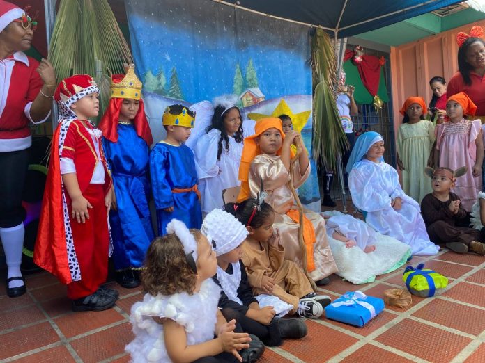 En compañía de la coordinadora de cultura, Claret González, la directora Gladys Díaz y la coordinadora pedagógica Norbelis Blanco, se dio inicio a esta tradicional actividad. Cada una de las cuatro salas del centro educativo eligió a un niño para representar a los personajes del nacimiento, como la Virgen María, San José, los Reyes Magos, los pastores, entre otros.