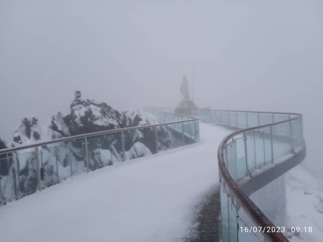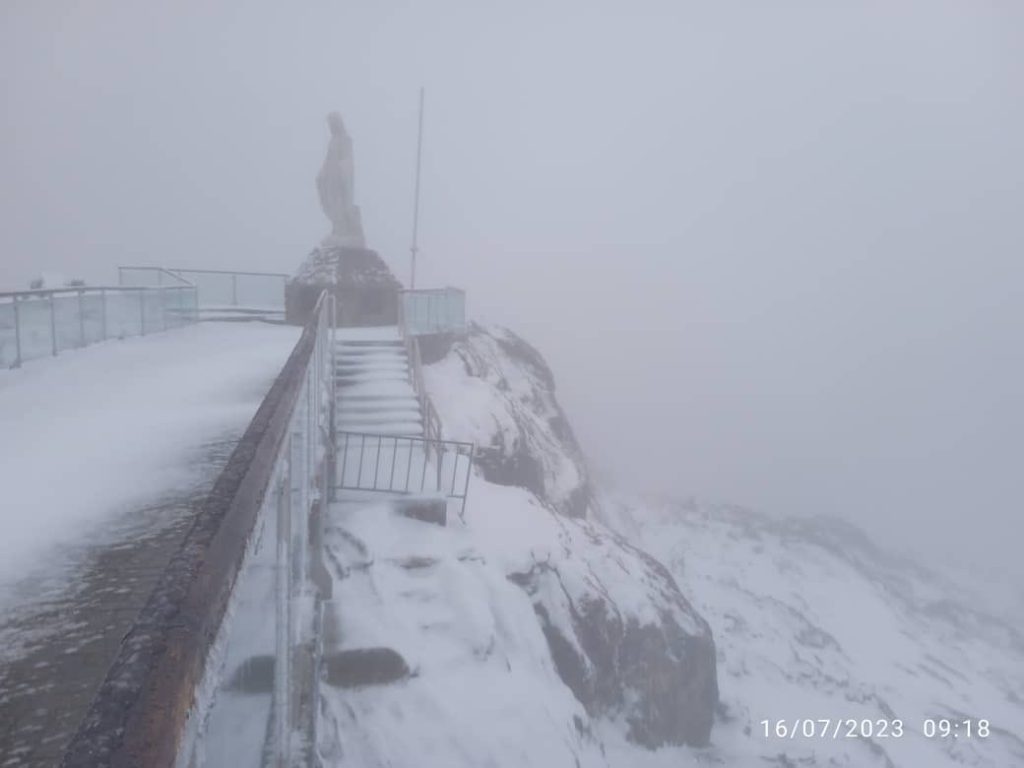 A través de su cuenta en la red social Twitter, Padrón manifestó que la nevada se registró junto a la Virgen de las Nieves.